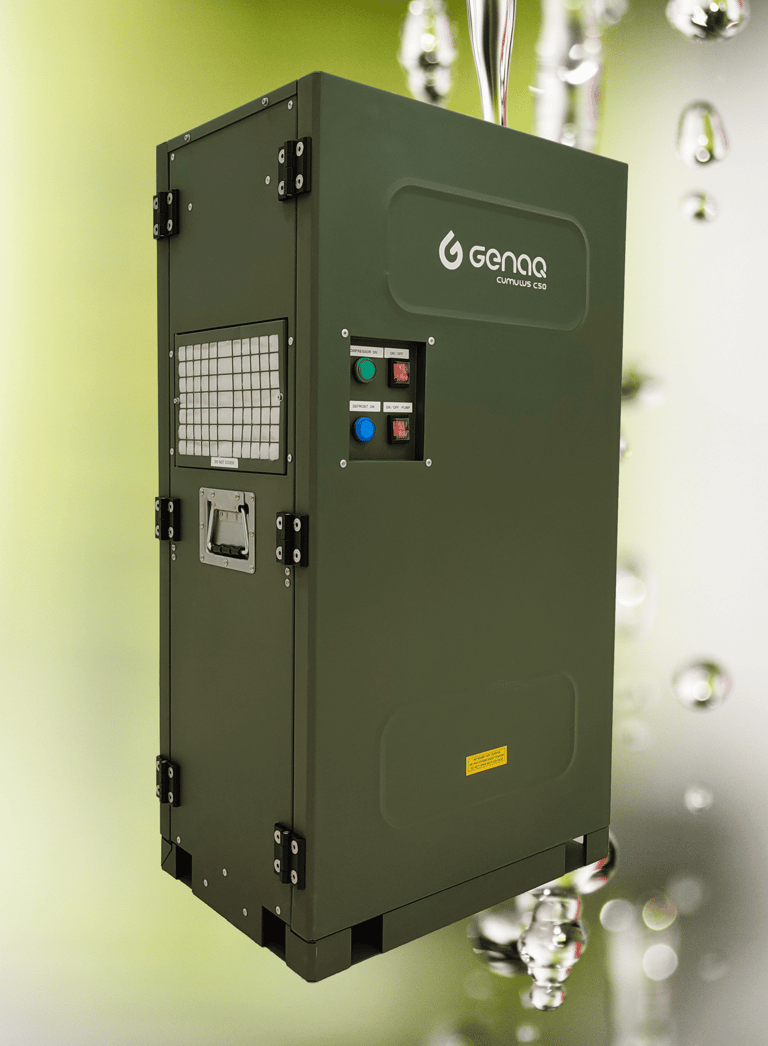 Deploy a reliable, high-quality water source anywhere, anytime. The GENAQ Cumulus C50 Atmospheric Water Generator produces up to 52 liters of pure drinking water daily directly from the air, eliminating dependence on uncertain water supplies and single-use plastics.